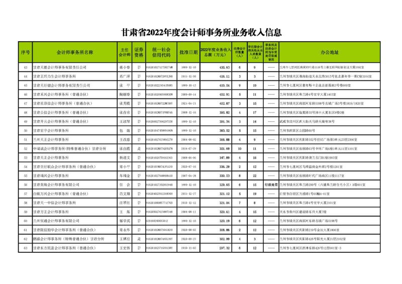 根據(jù)《甘肅省會計(jì)師事務(wù)所年度業(yè)務(wù)收入信息發(fā)布辦法》(甘會協(xié)[2021]10號),現(xiàn)將甘肅省2022年度會計(jì)師事務(wù)所業(yè)務(wù)收入信息予以發(fā)布